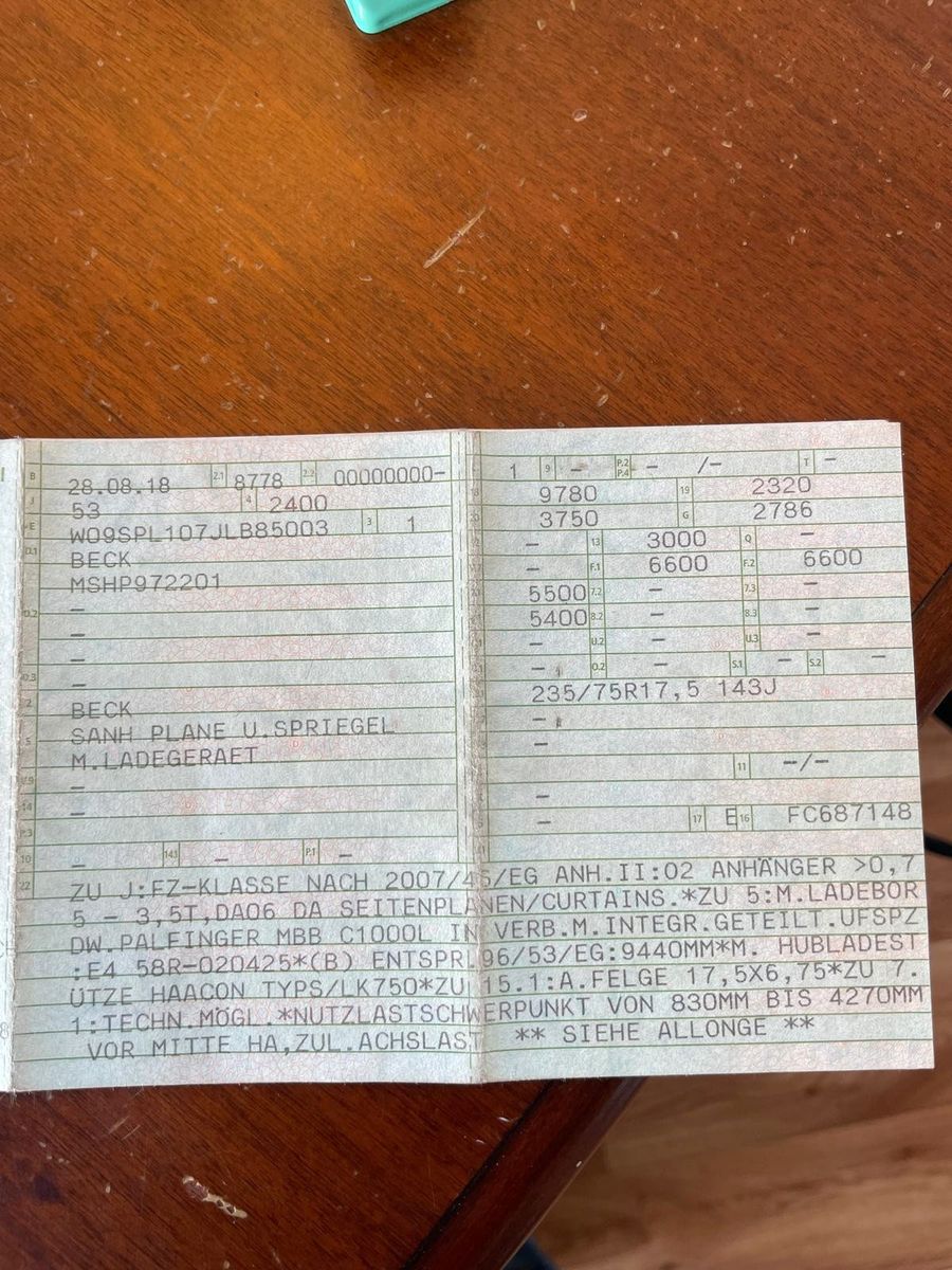 Fahrzeugdaten Auflieger :