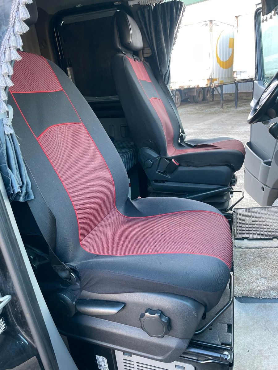 1 DIN-Schacht vorn unter Dachhimmel, Airbag Beifahrerseite, Anfahrhilfe (Berganfahr-Assistent), Anhängersteckdose 13-polig, Antenne für GSM-, GSP- und UMTS-Netz, Audiosystem Audio 15 (Radio mit Farbdisplay), Ausstattungs-Paket: Driver Comfort, Außentemperaturanzeige, Batterie zusätzlich (verstärkt), Bi-Xenon-Scheinwerfer mit Abbiegelicht, Dachbedieneinheit mit Lesespot Fahrer-/Beifahrerseite, Fahrassistenz-System: Auffahrwarnsystem mit Bremsfunktion (Collision Prevention Assist), Fahrassistenz-System: Fernlichtassistent, Fahrtenschreiber digital, downloadfähig, Generator 180 A, Klappdeckel für Ablagefach, Kraftstofftank: Haupttank 100 Ltr., Metallic-Lackierung, Parametrierbares Sondermodul, Raucher-Paket, Reserverad Super-Single-Bereifung (235/65 R16), Reserveradhalter unter Rahmenende inkl. Wagenheber, Sitze im Fahrerhaus: Beifahrersitz Komfort, Stabilisator hinten verstärkt, Stabilisator vorn verstärkt, Stoßfänger lackierfähig, Tankgeber für Zusatzheizung, Trennrelais bei Batterie zusätzlich, Verkleidung Rückwand, Vlies-Batterie 95 Ah, Wärmeisolierung Fahrerraum, Wärmeschutzverglasung (Frontscheibe mit Bandfilter oben), Zusatzheizung (Luft) mit Zeitschaltuhr
