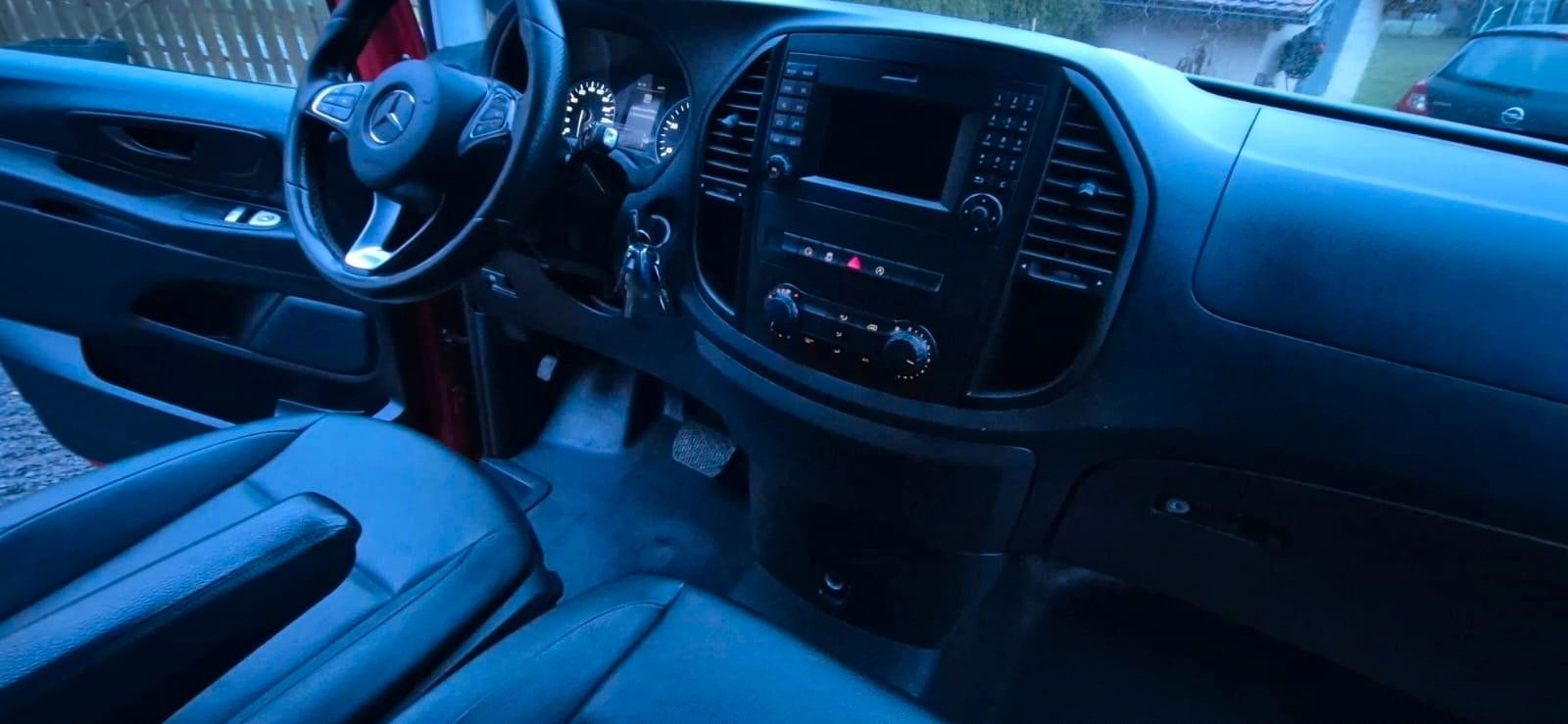 Sonderausstattung:Anhängelast 2500 kg, Außenspiegel elektr. verstell- und heizbar, beide, Bodenbelag: Fahrgastraum TPO, Einschaltautomatik für Fahrlicht, Fenster für hintere Türen / Heckklappe mit Wisch-/Waschanlage, Kindersicherung, Kraftstofftank: vergrößert, Lenkrad (Lenksäule mech. verstellbar), Navigationssystem Becker MAP Pilot, PTC Heater, Reserveradhalter unter Rahmenende inkl. Wagenheber, Schienensystem Lastenverankerung, Sitzbezug / Polsterung: Kunstleder (Fahrerhaus), Sitze im Fahrerhaus: Beifahrersitz als Zweiersitz, Sitze im Fahrerhaus: Fahrersitz Komfort, Sitze im Lade-/FG-Raum: 1.Reihe, 3er-Sitzbank, Klappsitz außen, Verglasung hinten abgedunkelt / Schwarzglas, Verkleidung im Lade-/FG-Raum: Standard, Vlies-Batterie 92 Ah, Wärmeschutzverglasung, Zweiwege Lautsprecher vorn und hinten