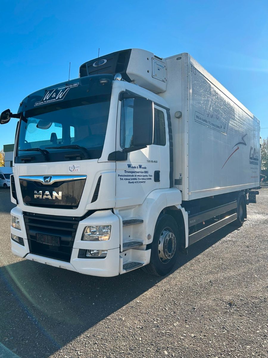 Zum Verkauf kommt ein MAN TGS 18.460 mit einem Kühlkofferaufbau von Schmitz Cargobull, mit Ladebordwand Bär BC 2000 und Kühlaggregat Carrier Supra 850.
